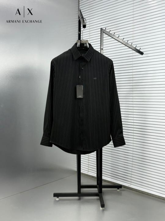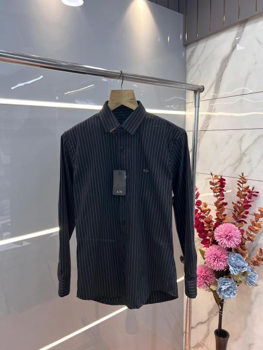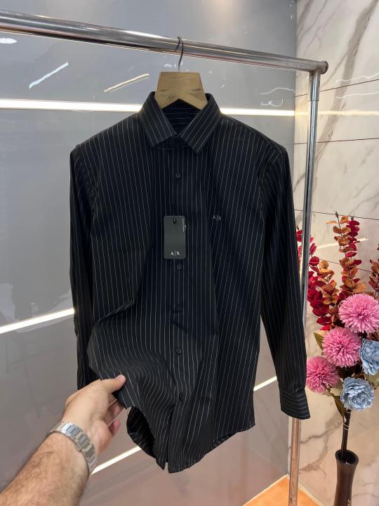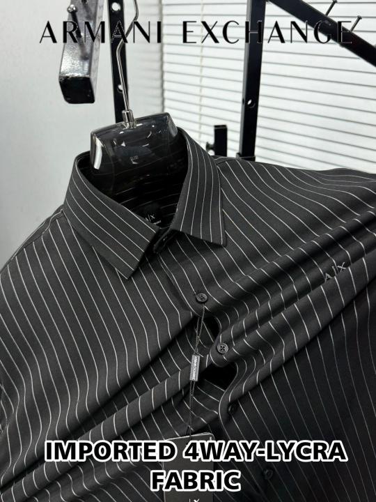 Arman i Exchange Black Premium Korean Lycra Fabric Shirt With custom Branded Button Tagging And Brand Packing Small Strip 3245