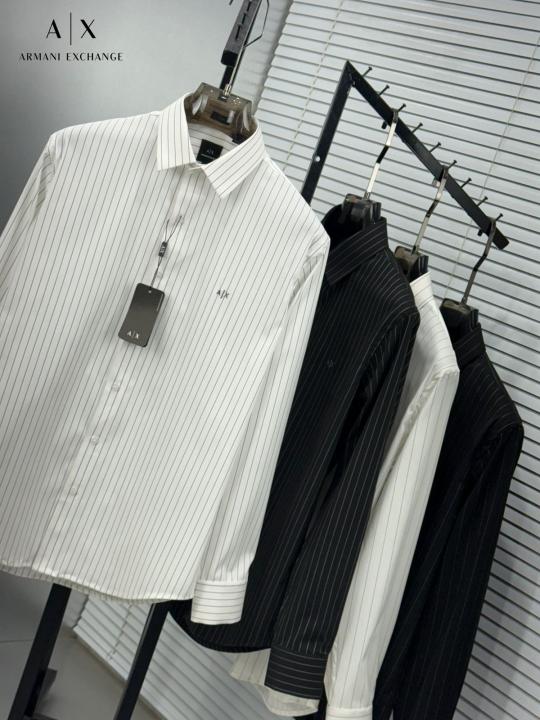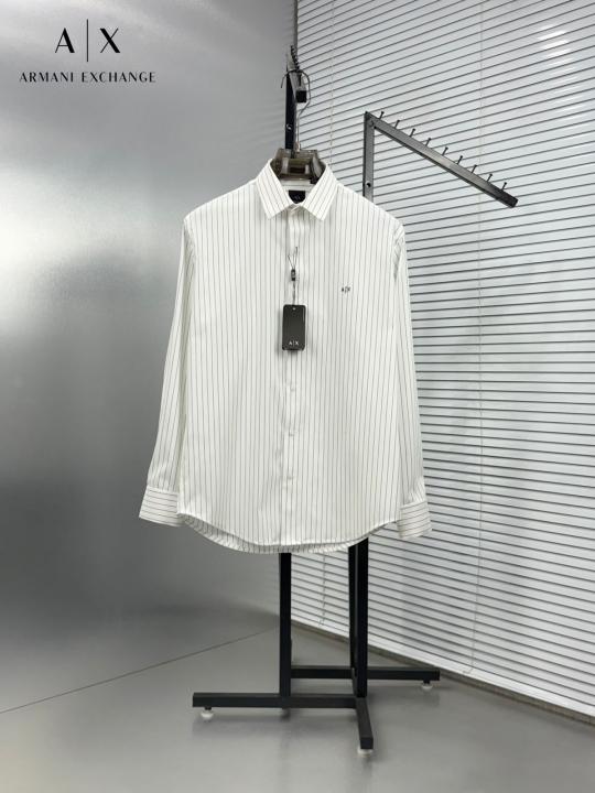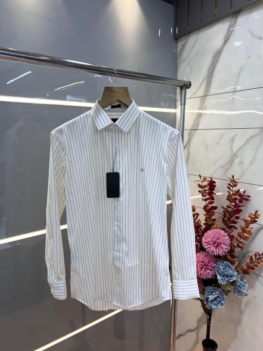Arman i Exchange White Premium Korean Lycra Fabric Shirt With custom Branded Button Tagging And Brand Packing Small Strip 3246