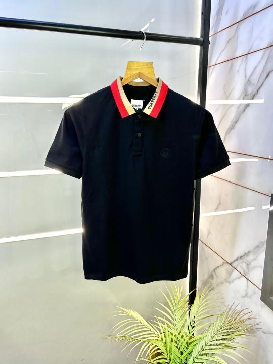 Burberr y Black Polo Premium Collar Neck T-shirt F2759-BL