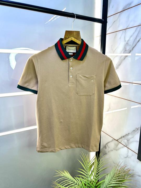 Gucc i Brown Imported Polo Neck Premium Collar T-shirt F2777-BR2