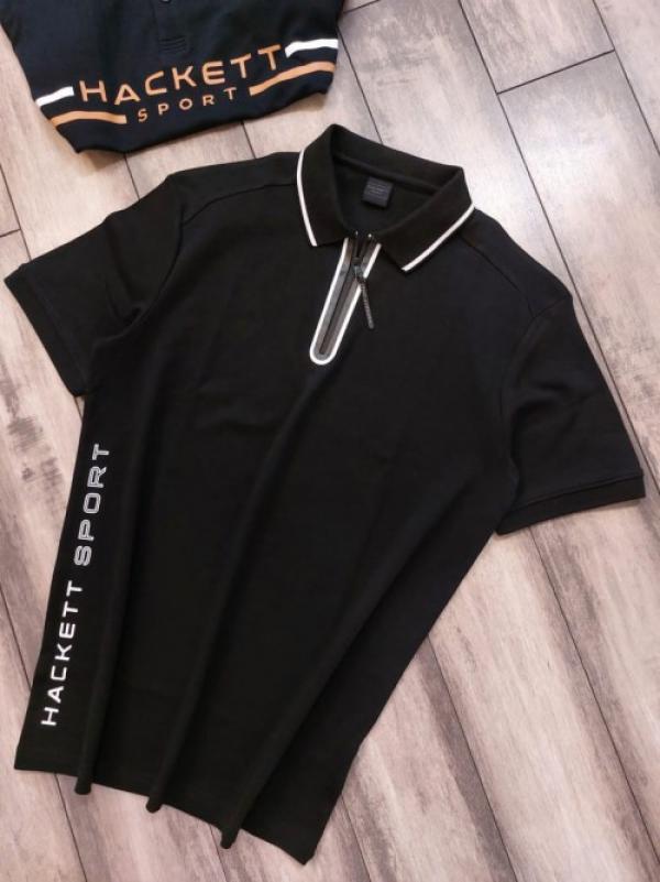 Hacket t Black Premium Polo TShirt with 240 gsm interlock cotton lycra fabric with Emboss Printed Logo and Collar Design 2473