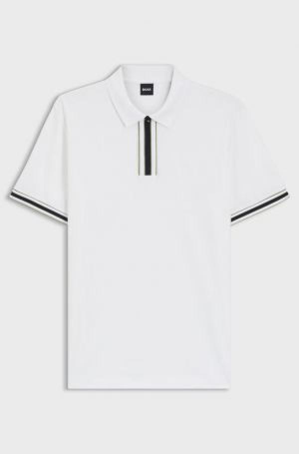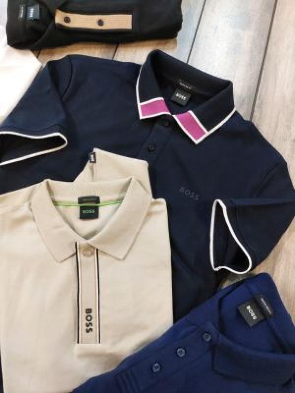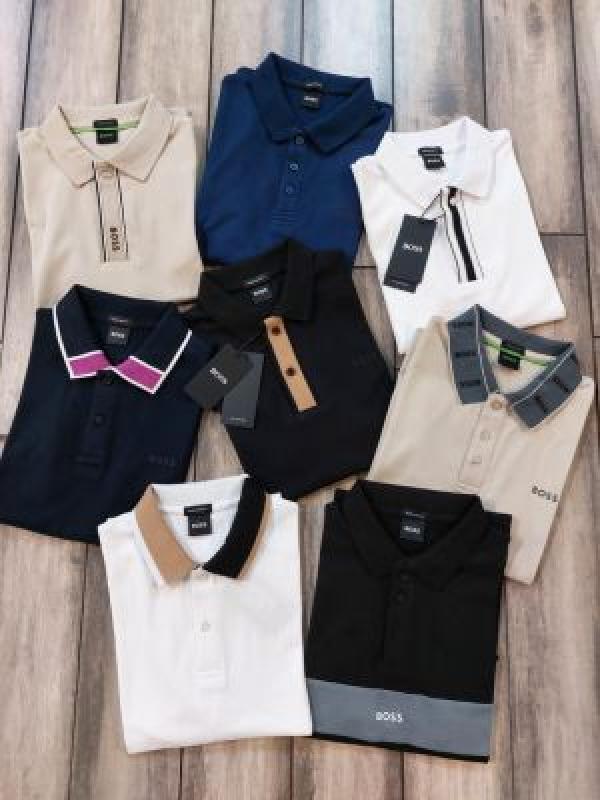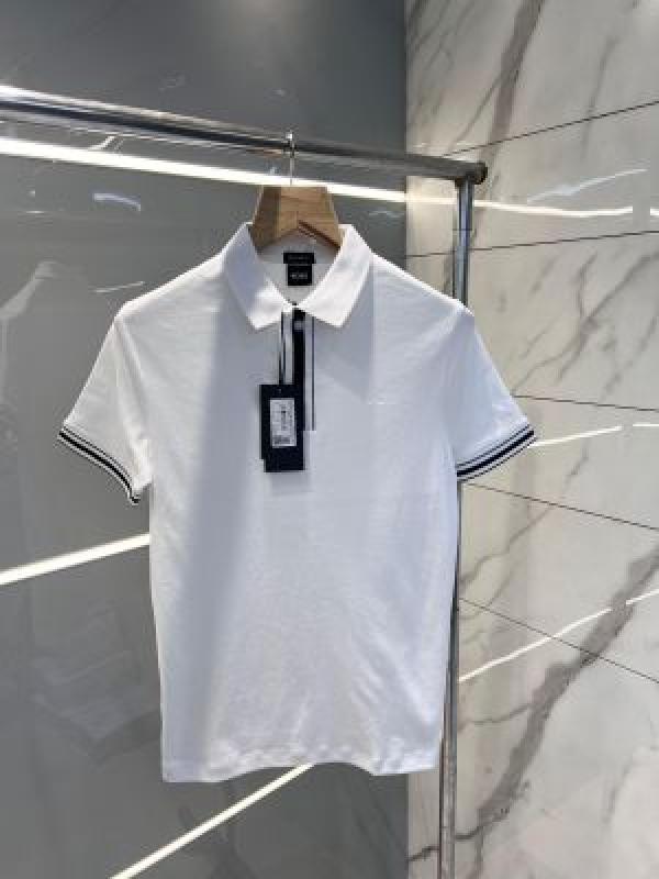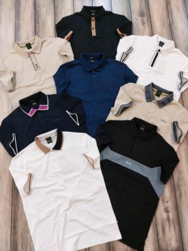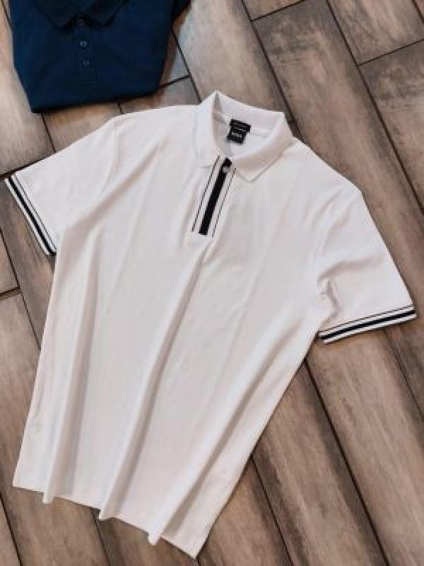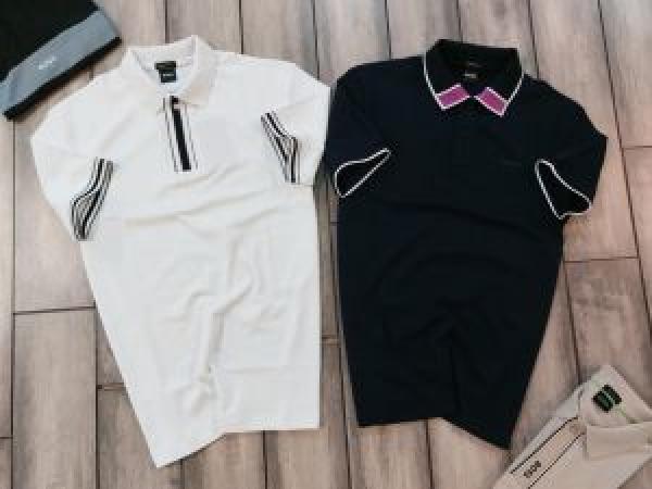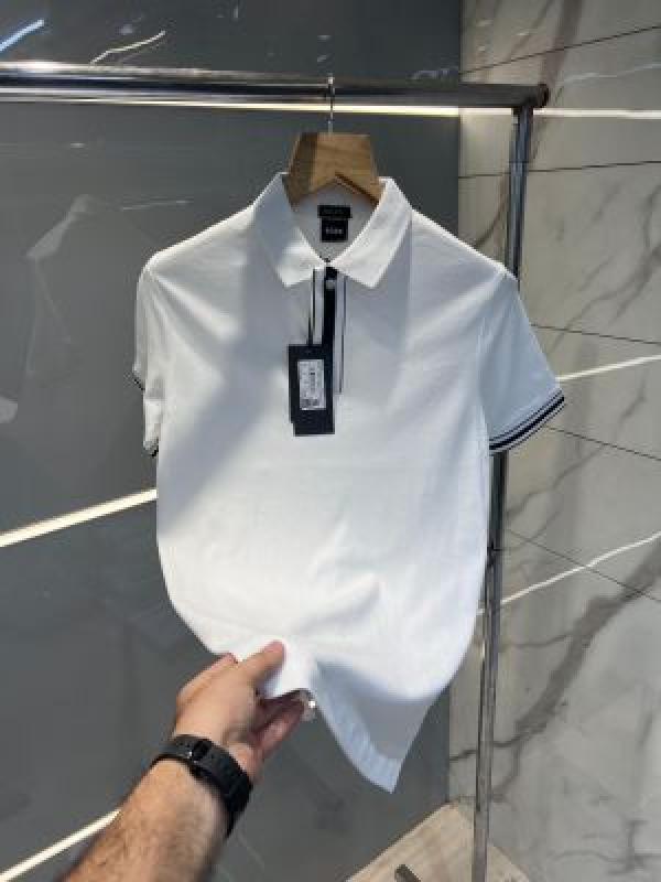 Hugo Bos s White Premium Imported Compact Yarn 240 GSM Interlock Fabric Polo Tshirt with Sleeves Design and Emboss Logo 2979