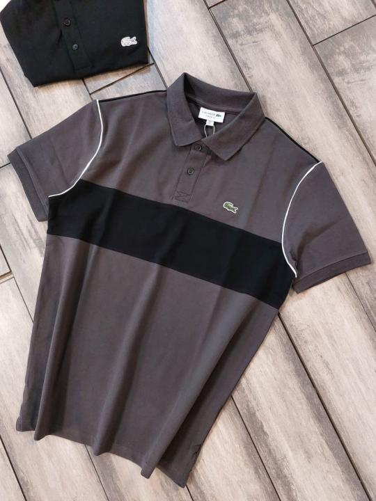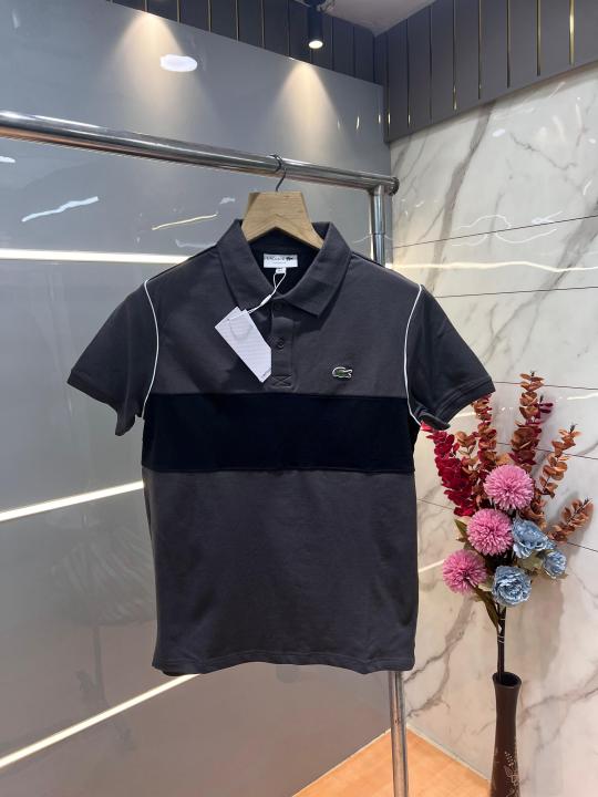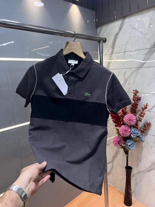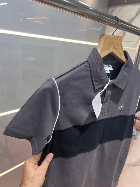 Lacost e Grey Premium Cotton Pique fabric Polo Tshirt with Front Design and Embroidered Logo 3166