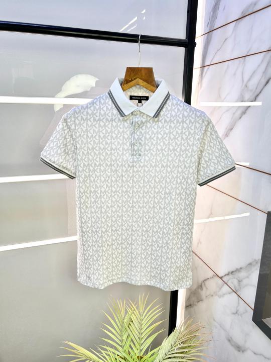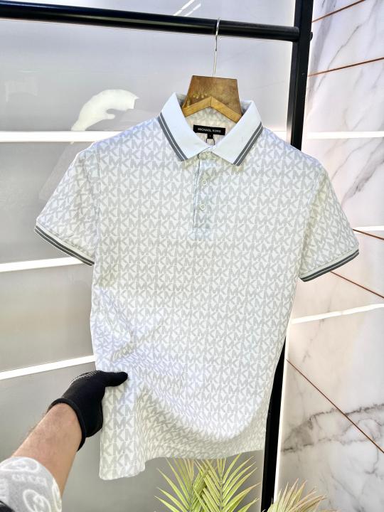 Michael_Kors Monogram Print White Polo Premium Collar neck T-shirt F3236-WH