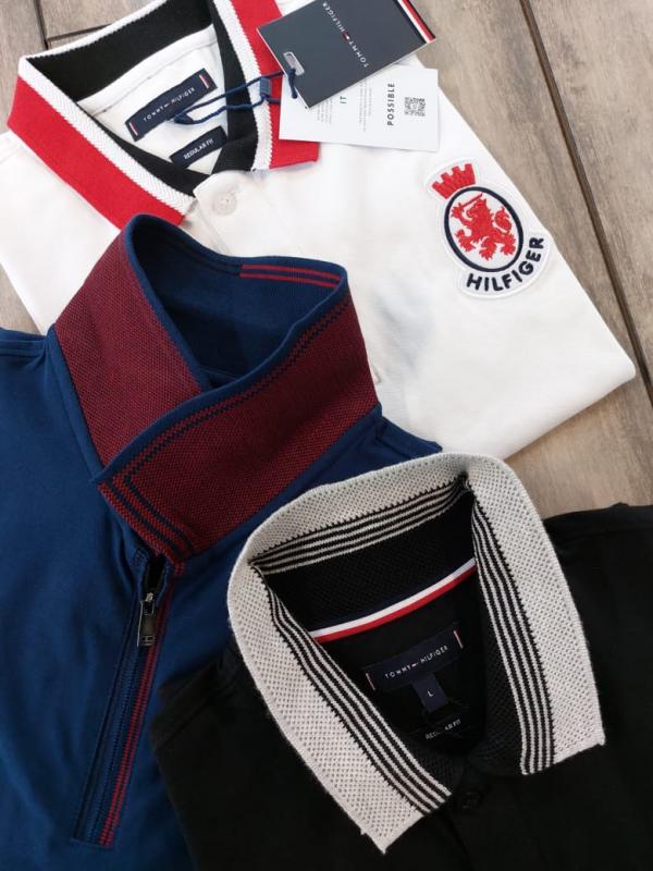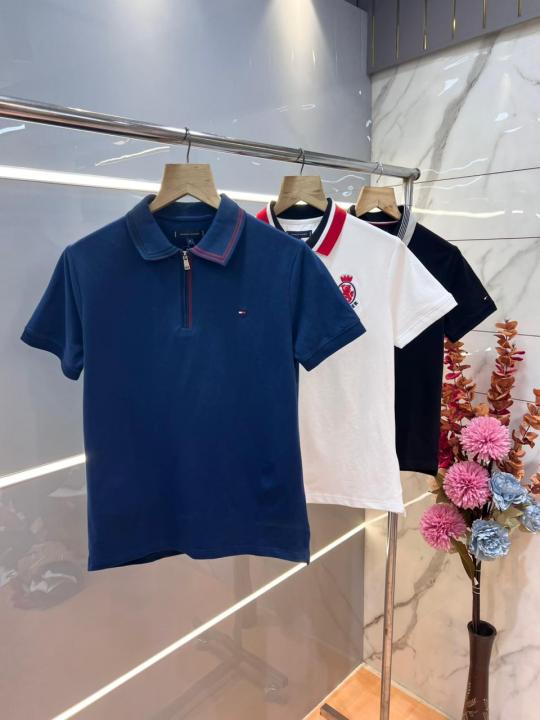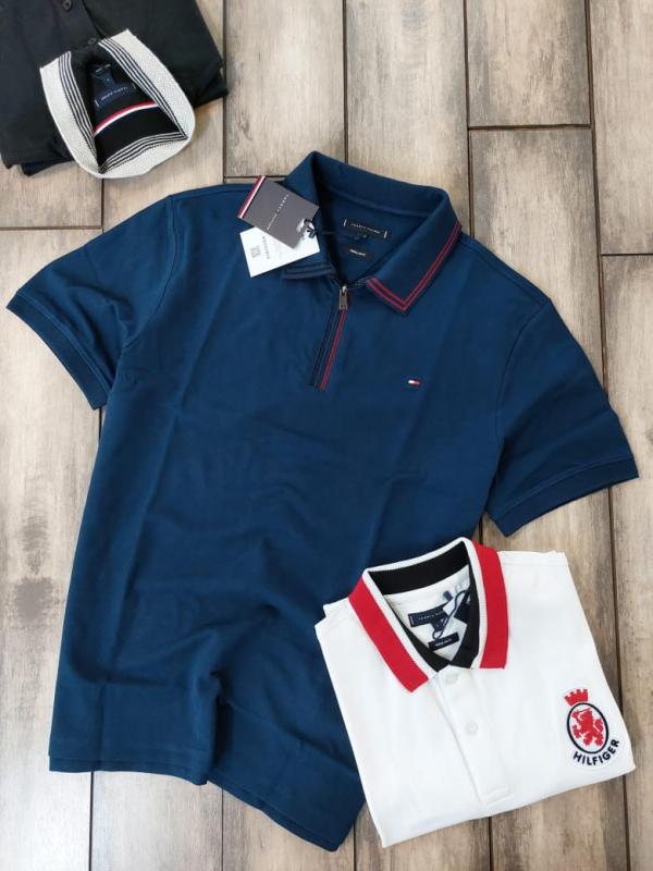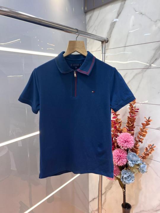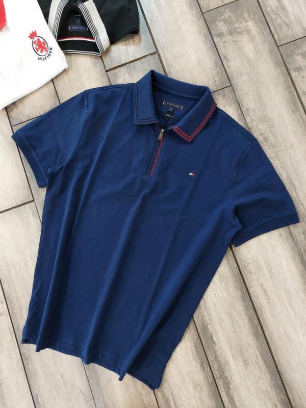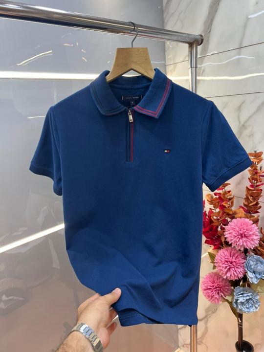 Tommy Hilfige R Blue Premium Cotton Pique fabric Polo Tshirt with Collar Design and Embroidered Logo Zip Style 3079