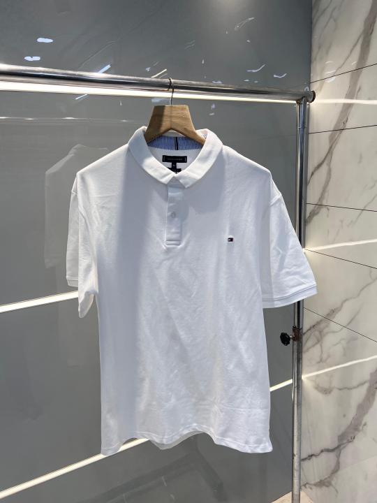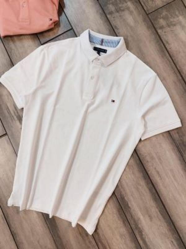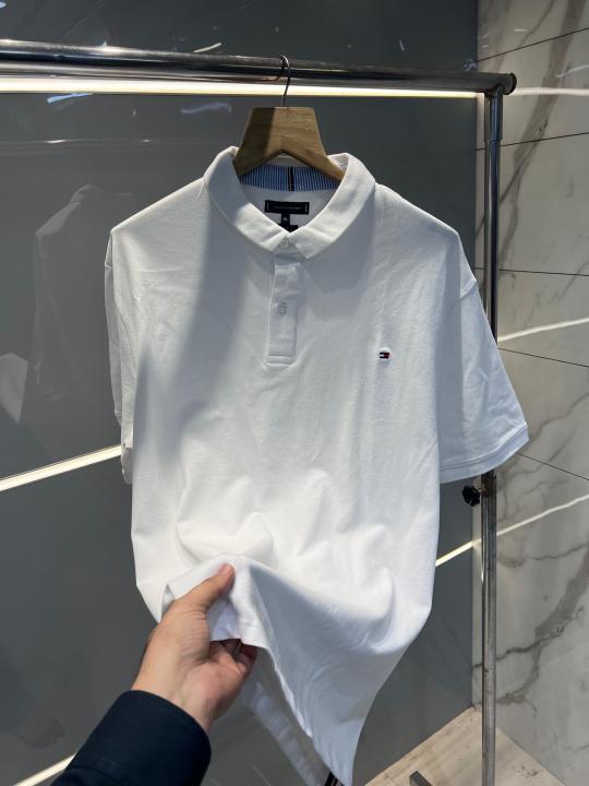 Tommy Hilfige r White Premium Cotton Lycra Pique fabric Polo Tshirt with Embroidered Logo 2834