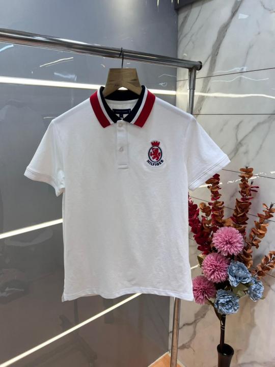 Tommy Hilfige R White Premium Cotton Pique fabric Polo Tshirt with Collar Design and Embroidered Logo 3078