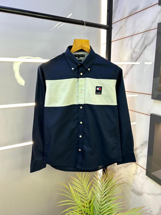 Tommy_Hilfiger Navy Oxford Lycra Premium Printed Shirts F2613-NY