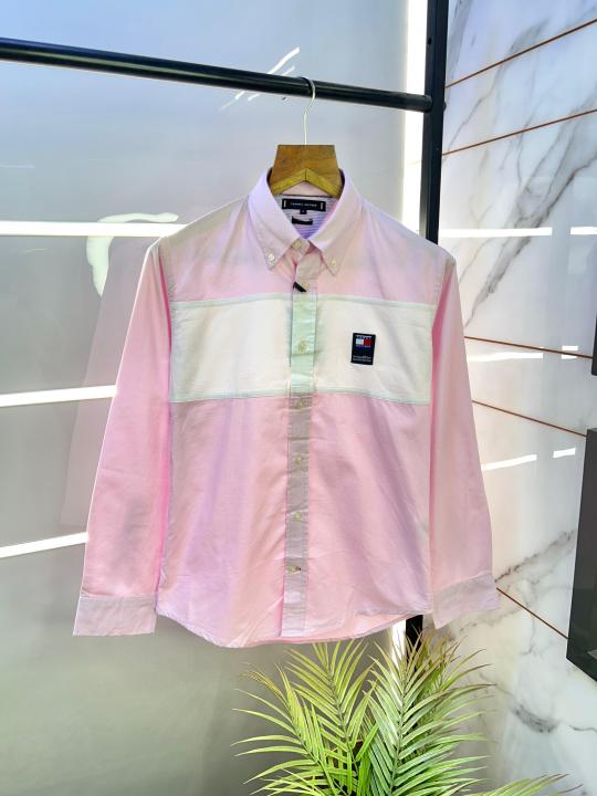 Tommy_Hilfiger Pink Oxford Lycra Premium Printed Shirts F2613-PI