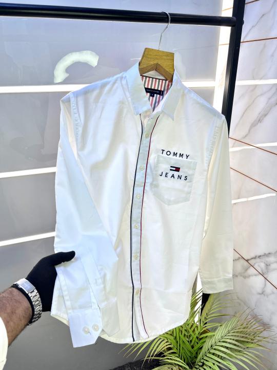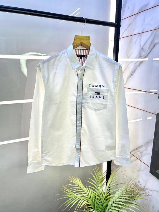 Tommy_Hilfiger White Oxford Lycra Printed Premium Shirts F2822-WH