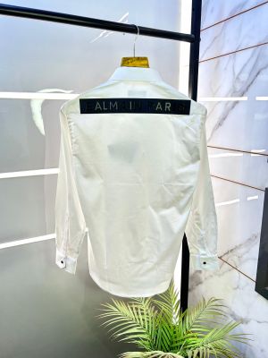 Balmai n Paris White Premium Imported Emboss Logo Shirt with Brand Box and Carry Bag 2974