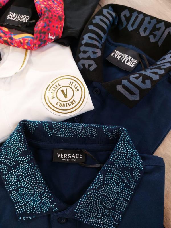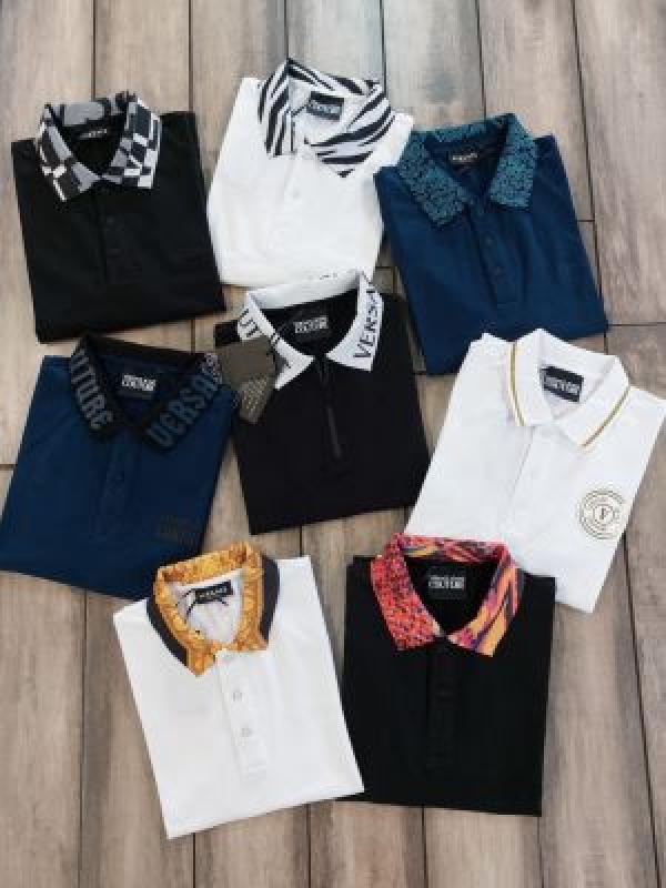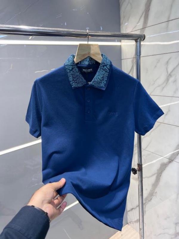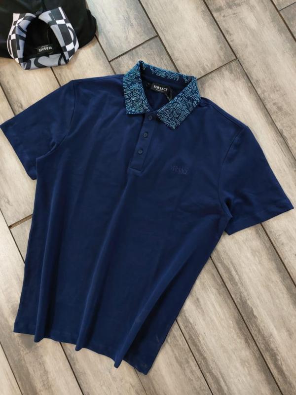 Versac e Inkblue Premium Cotton Lycra Pique fabric Polo Tshirt with Collar Design and Embroidered Logo 2887