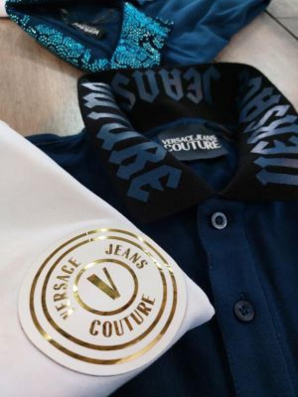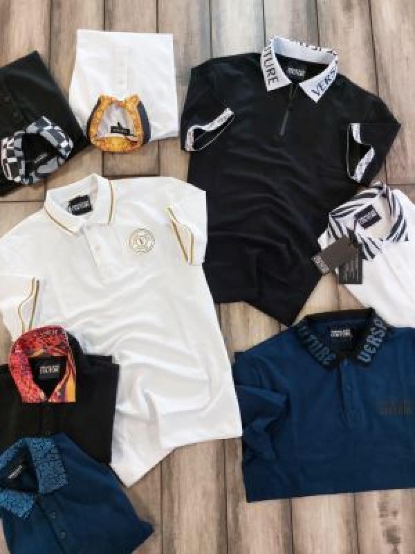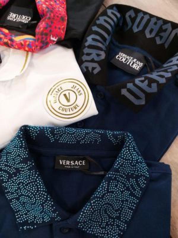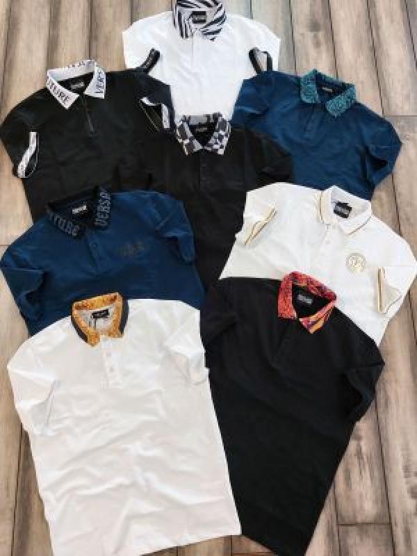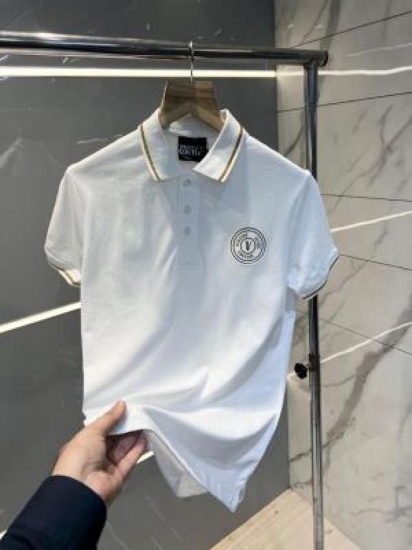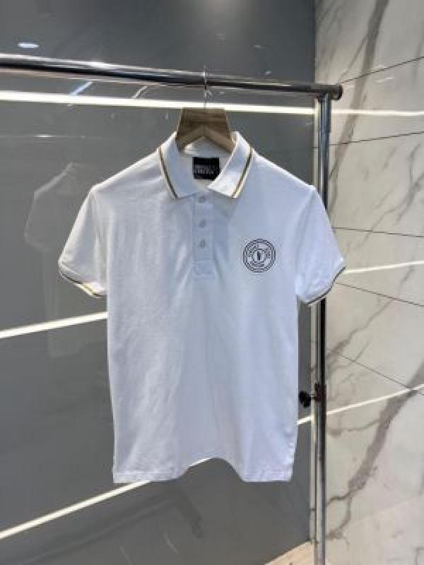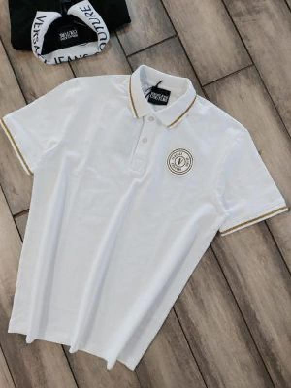 Versace White Premium Cotton Lycra Pique fabric Polo Tshirt with Collar Design and Emboss Logo 2886